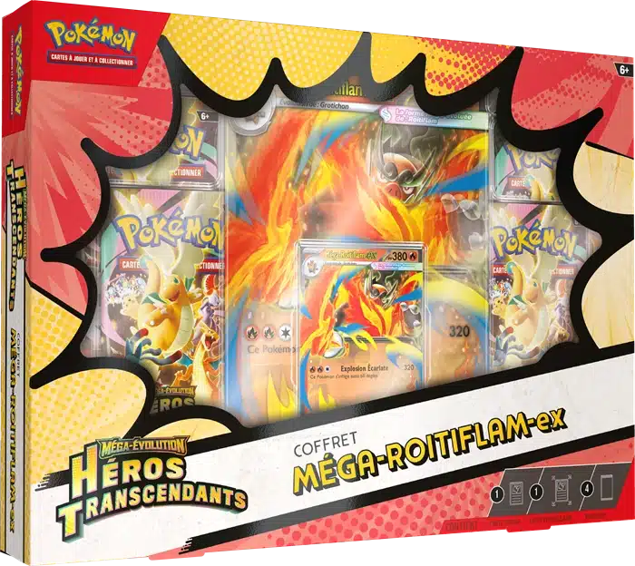 Cartes Pokemon – Cartes Pokemon – ME02.5 ‘Héros Transcendants’ ex Box Mega Roitiflam EX