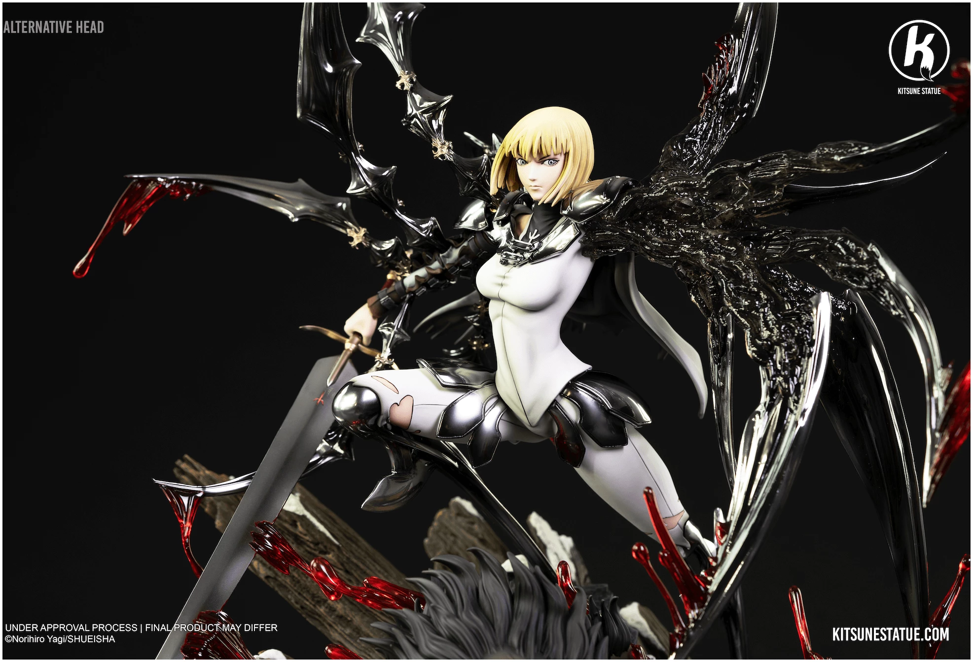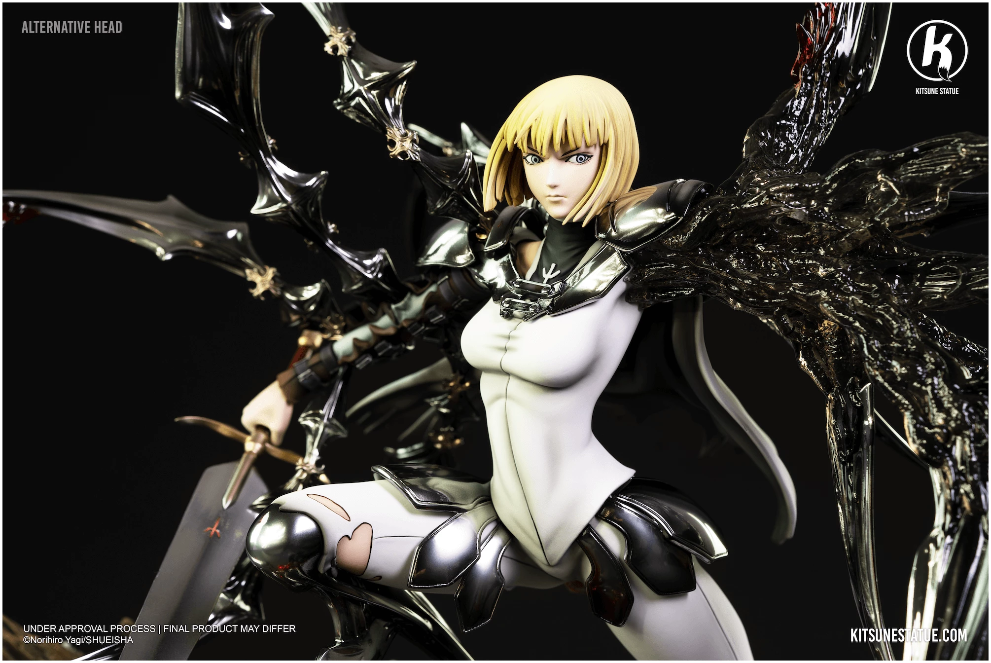 Clare est le personnage central de Claymore. Cette statue la représente en pleine phase d’éveil, avec un système de têtes interchangeables, permettant de choisir entre une expression éveillée ou non. Chaque collectionneur peut ainsi personnaliser l’apparence finale de la pièce selon ses préférences.