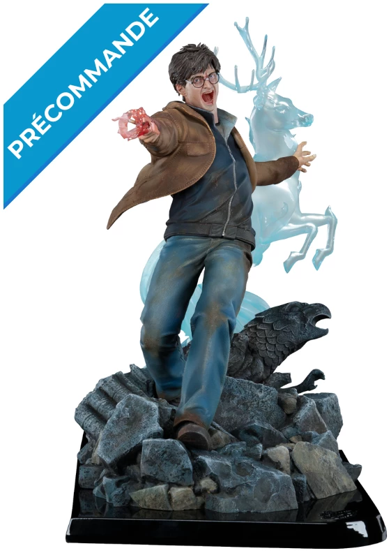 Iconique : L’affrontement entre lumière et obscurité. Nous avons souhaité représenter Harry à travers les valeurs qu’il a porté durant toute la saga : Espoir, force et courage. La détermination sur son visage en lançant son sort, son Patronus, identique à celui de son père, représentant un cerf et enfin cette gargouille à l’effigie de Griffon, symbole de sa maison.