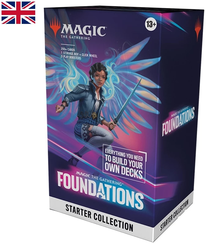 Collection de démarrage Fondations de Magic: The Gathering – 350+ cartes Magic, 3 boosters de jeu, guide de construction de deck, compteur à molette et boîte de rangement