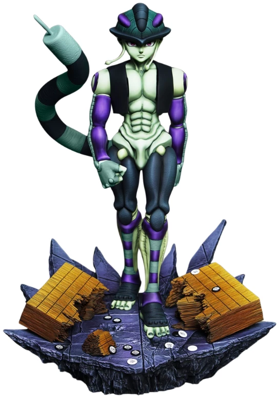 Cette première statue de notre nouvelle gamme au format 1:4, regorge de détails, du socle et des pions, jusqu’à la texture présente sur les aspects « fourmis » de Meruem.
