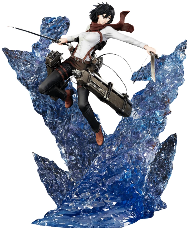 Vous retrouverez Mikasa s’élançant des pylônes de glace faits en résine translucide !