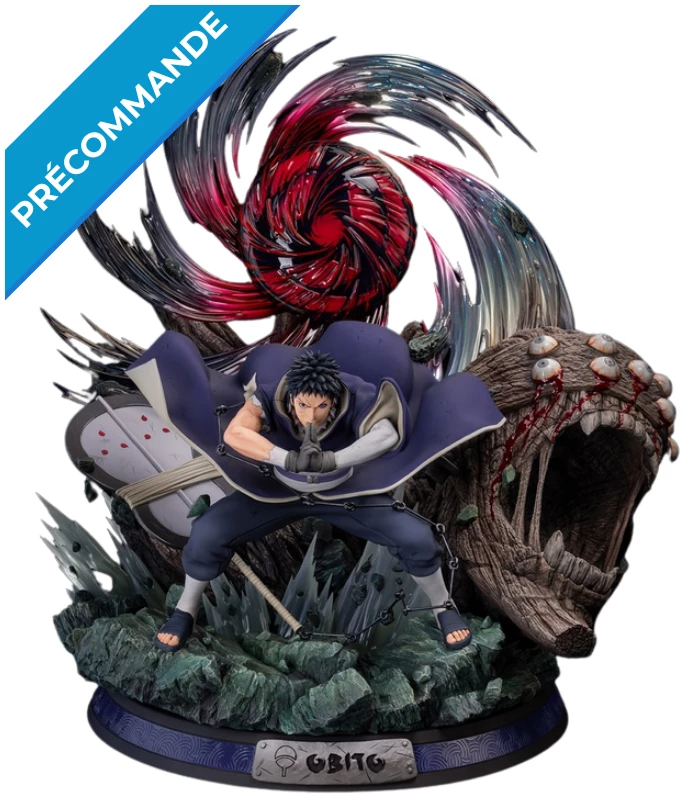 Les souvenirs marquants d’Obito de l’innocence à la rédemption s’enchaînent dans une vidéo poignante de Naruto Shippuden. L’animation hypnotique du Mangekyō Sharingan tourne en boucle sur l’écran LED 5 pouces, renforçant l’aura énigmatique de l’imposante statue.